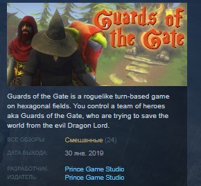 Guards of the Gate is a roguelike turn-based game on hexagonal fields. You control a team of heroes aka Guards of the Gate, who are trying to save the world from the evil Dragon Lord.
